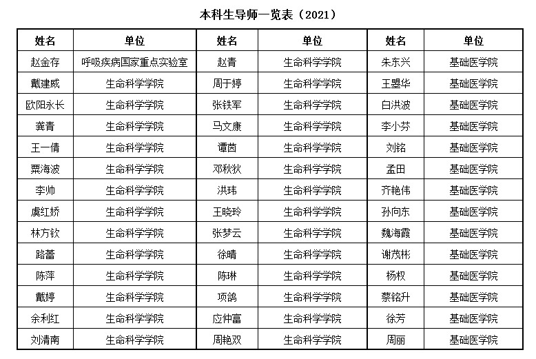学院自2020年全面实行导师制,聘请中国科学院广州生物医药与健康研究院、呼吸疾病国家重点实验室以及本校基础医学院等多个单位导师参与指导,实现学生个性化培养。学生大一入学后根据个人情况选择导师,在导师的指导下开展学术学习和科学研究工作。导师根据实际情况指导学生了解科技前沿,阅读科技文献,撰写文献综述,培养学生科研思维。同时,依托校院创新基金对学生科研训练项目立项并予以资金支持,鼓励学生在导师指导下独立完成项目研究。成绩优异者将进一步获得科研项目和参加全国性比赛的机会,在导师指导下强化实践能力和创新能力。